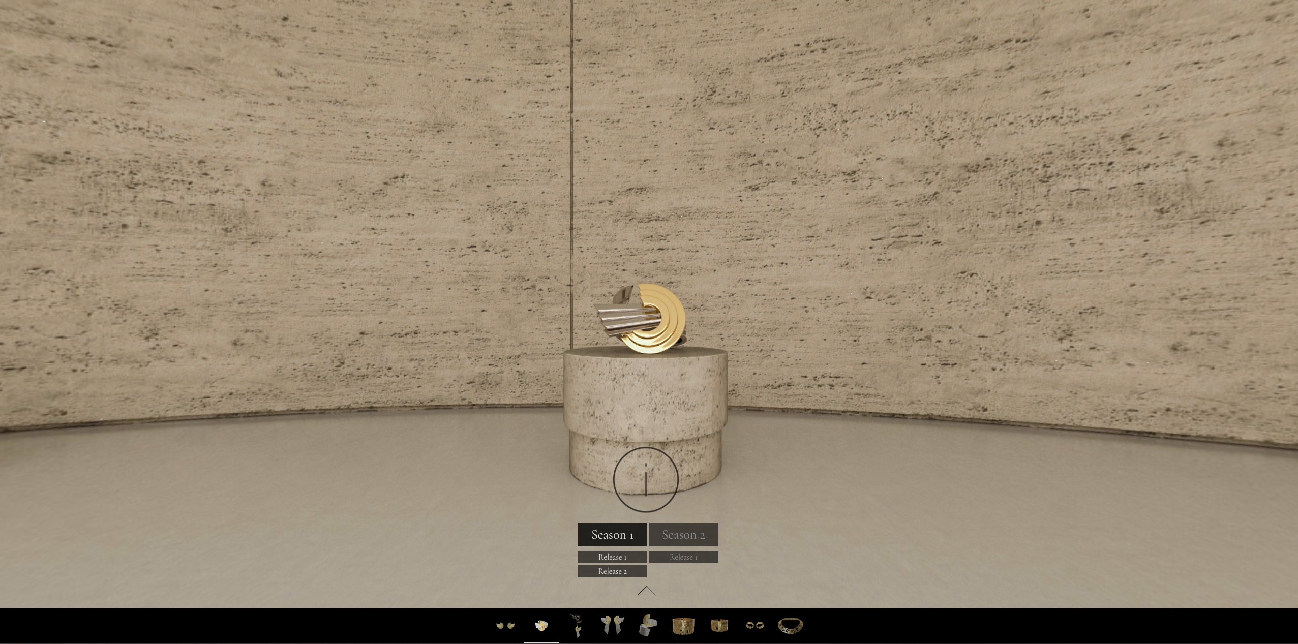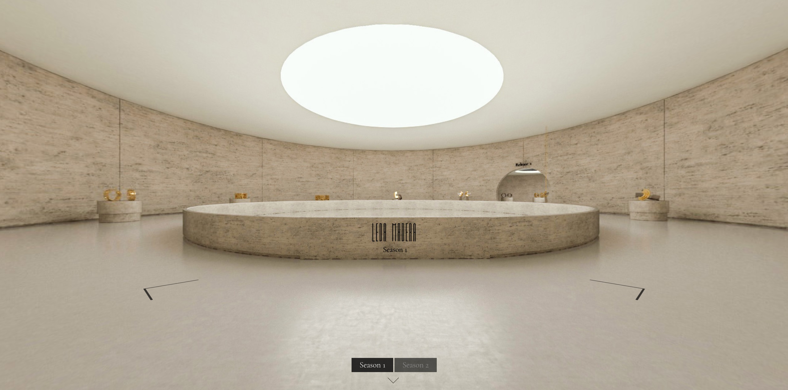 An immersive 3D virtual tour shop, with multiple rooms and products.