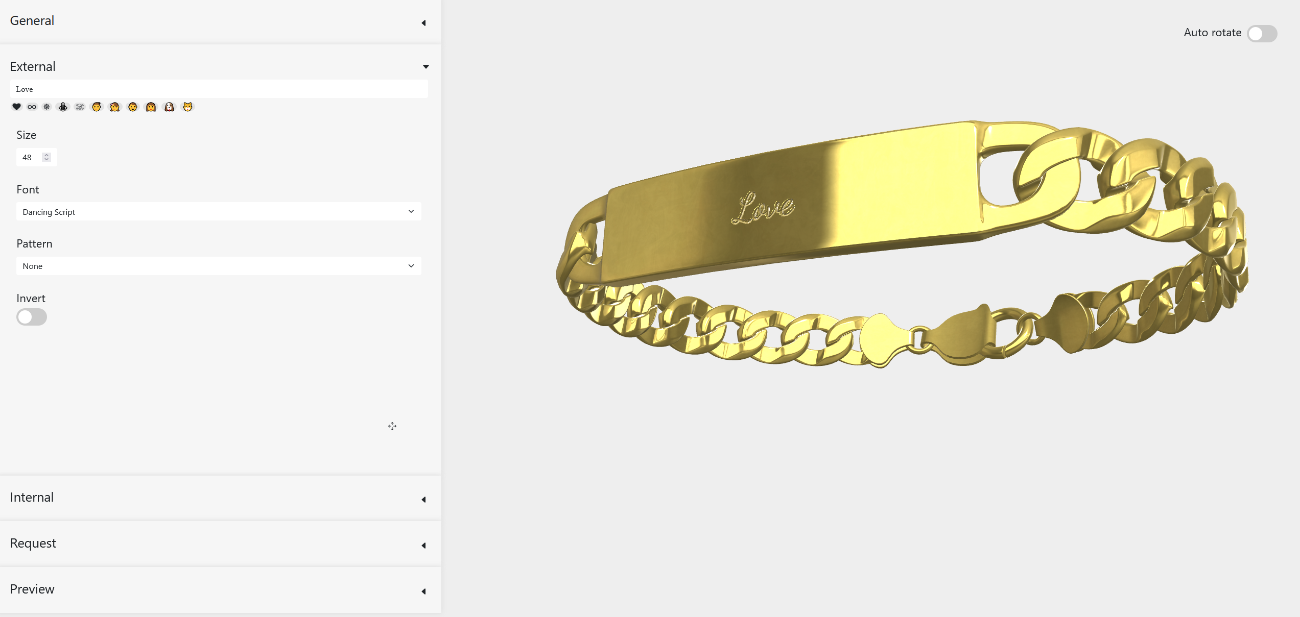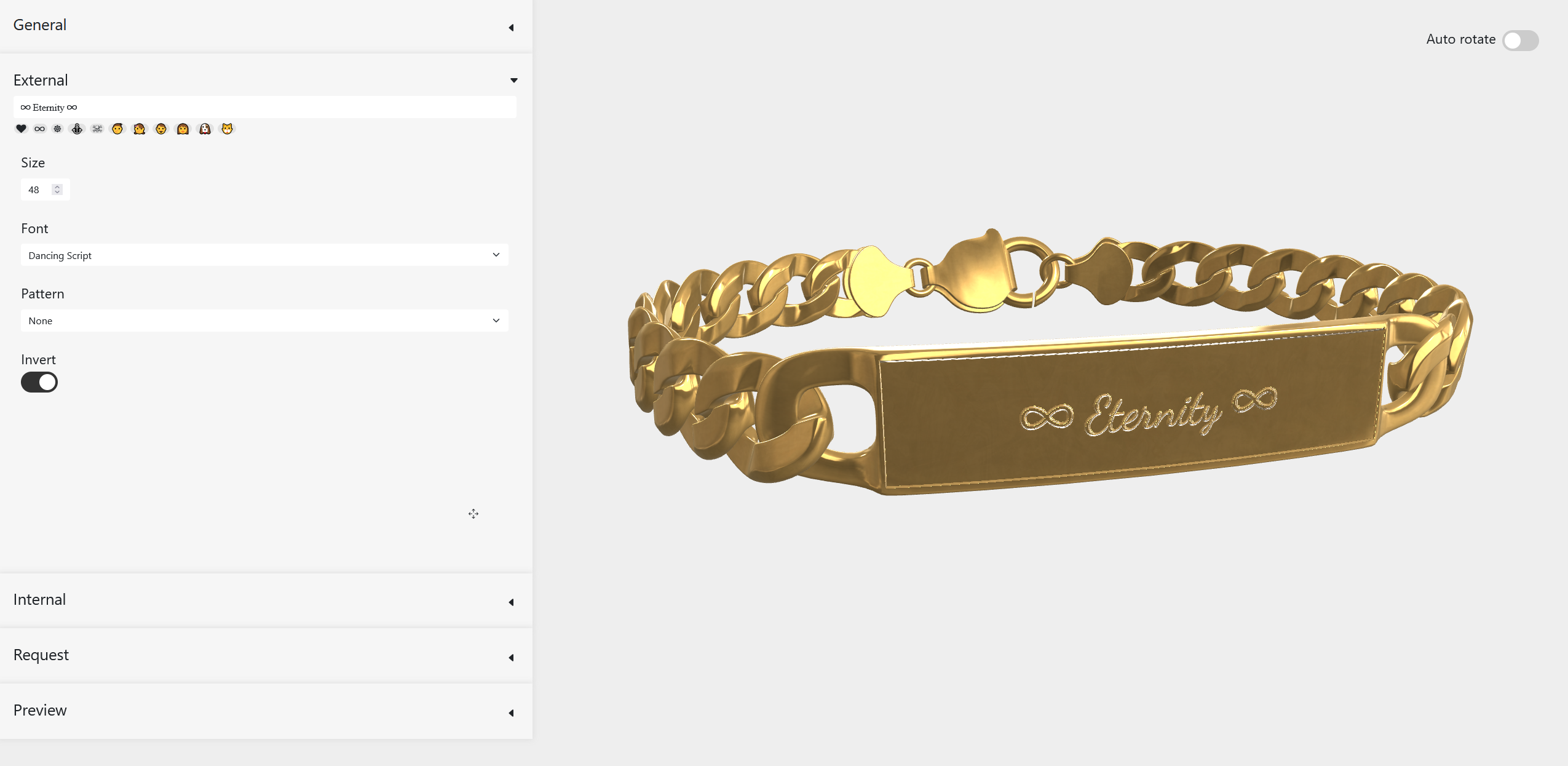 A three.js real time configurator for text preview on a ring, changing text, font and size