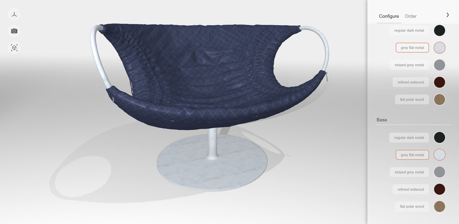 With the UI it's possible to change materials at different parts of the mesh, take screenshots and download them.